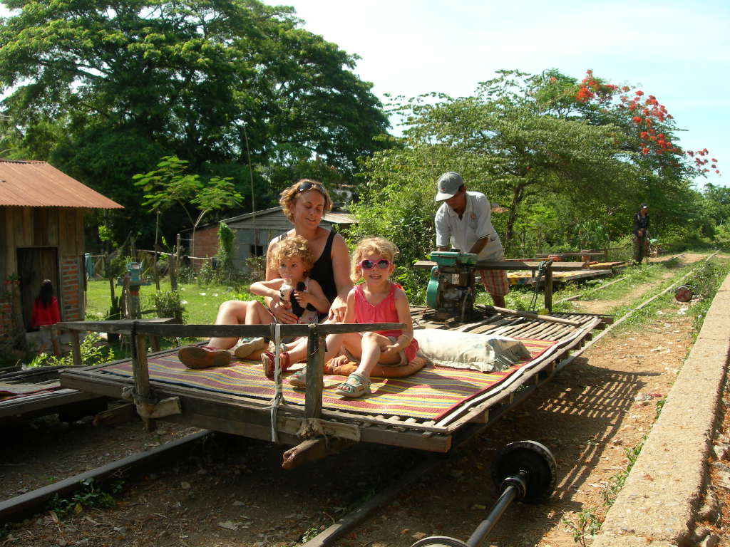 5. Le train bambou ça decoiffe! Les cheveux au vent elles sont belle les filles, lunettes pour les un et sussu pour pour Clémentine qui ne la lache que pour dévorer du regard le riz que son papa touille…..vous mangez local……la souris séché ça donne quoi ? Ici le mistral est au rendez vous, donc pas de mouchettes pour ennuyer les doudoux tout va bien…… bisous