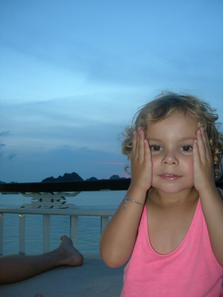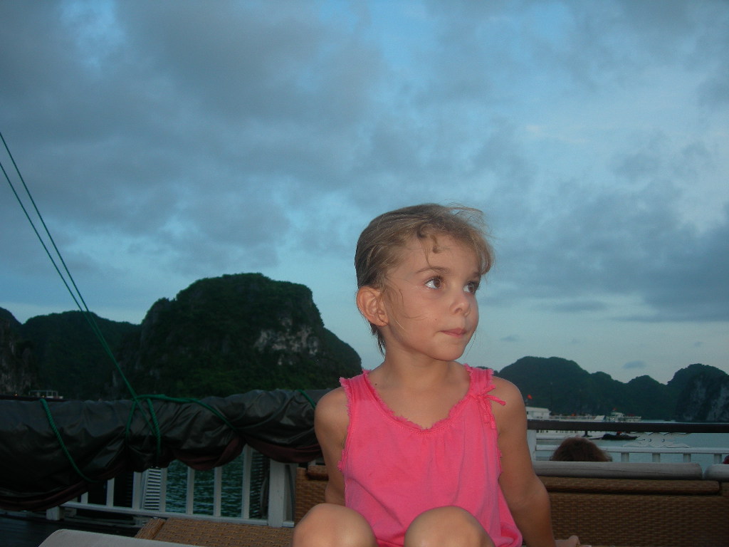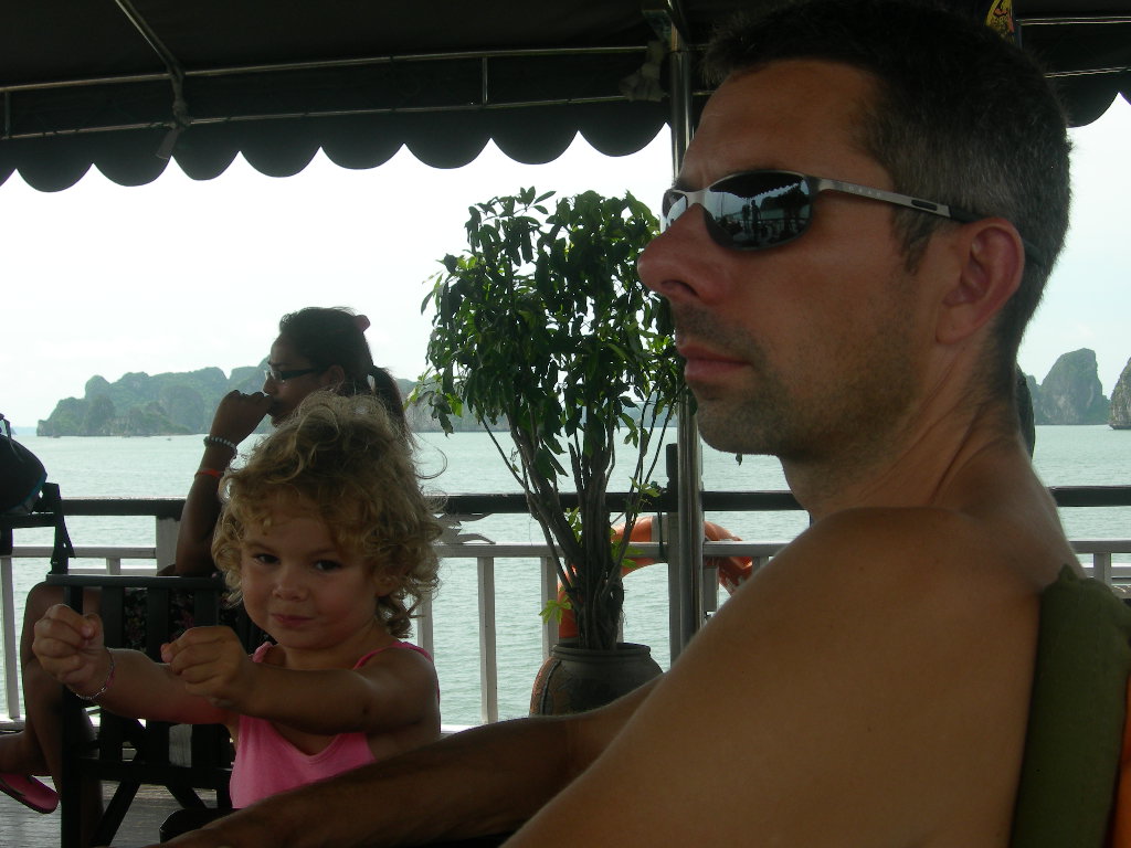 Galere, galere, galere.. Arrive a l’hotel, nous avons des doutes; la rue est HYPER bruyante, un traffic incessant de scooter, environ un coups de klaxon toutes les 2 secondes; Soit 1.800 coups de klaxon par Heure ! Le gerant nous assure que la nuit sera tres calme.. Le traffic s’arretera fianelement vers 23h…. A Minuit deboule une betonniere qui restera en pleine action sous nos fenetres jusqu’a 02h du mat et les ouvriers finiront d’etaler le beton jusqu’a 04h du matin… A 6h du mat, le traffic et ses klaxons reprendra son acharnement.. A 08h nous nous mettons en recherche d’un autre hotel, on en trouve un pas mal et le manager nous assure que c’est ce qu’il y a de plus calme; Nous revons tous d’une bonne sieste…. A 14h le batiment voisin commence ses traveaux de renovation; Coup de marteaux, foreuses, etc.. Le gerant parait etonner que cela soit genant.. On repart > En 24h, nous aurons changer 3x d’hotels. OK / No problem, on se met en recherche d’une croisiere pour la Baie d’Halong… Quel enfer.. Des vendeurs partout; dans les agences, les hotels, les cafes, les restos, la rue, les taxis > Des prix allant de $600 a $300 pour une croisiere de 24h.. Sans savoir ce qu’on aura vraiment au final comme prestation..Beaujour la prise de tete. A Hanoi, TOUT se negocie, le prix du Taxi avec son compteur, l’entree au theatre, la boisson au magasin, le ticket de train ! Nerf sensible s’abstenir.. Apres les copies sur les fringues, shoes, montres; Hanoi vous reserve meme des copies d’hotels de bonne reputation afin de vous y attirer sans savoir que vous n’etes pas au bon !! Nous sommes sur les rotules… Mais la Baie d’Halong en valait le coup.